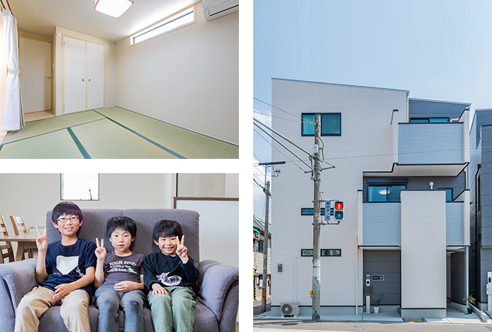 3人目の子どもの小学校入学をきっかけに、マイホームを本格的に探しはじめました。以前はマンション暮らしだったのですが、もともと実家が一戸建てだったこともあって、一戸建てを希望していました。マンションのように上下階などに気を使わなくてもいい点と、生活するうえで自由度が高いという点も、一戸建てほうが住みやすさを感じる理由です。また、いくつかの不動産会社さんを回って検討しましたが、最新設備による暮らしやすさという面で、新築一戸建てのほうがいいと思いました。
